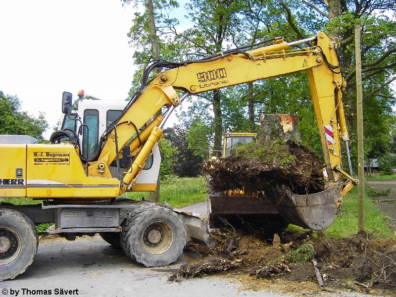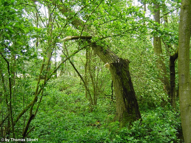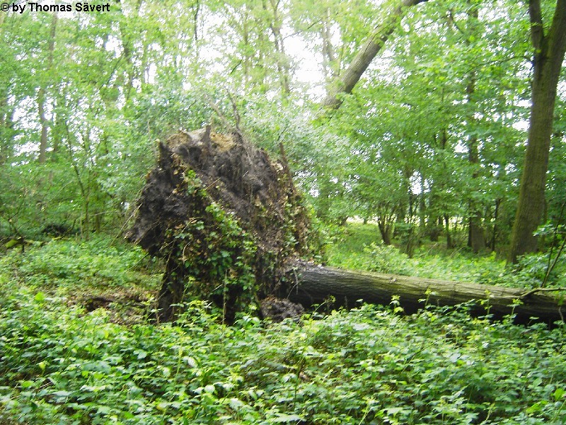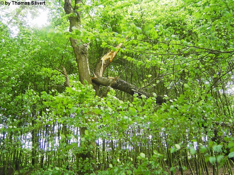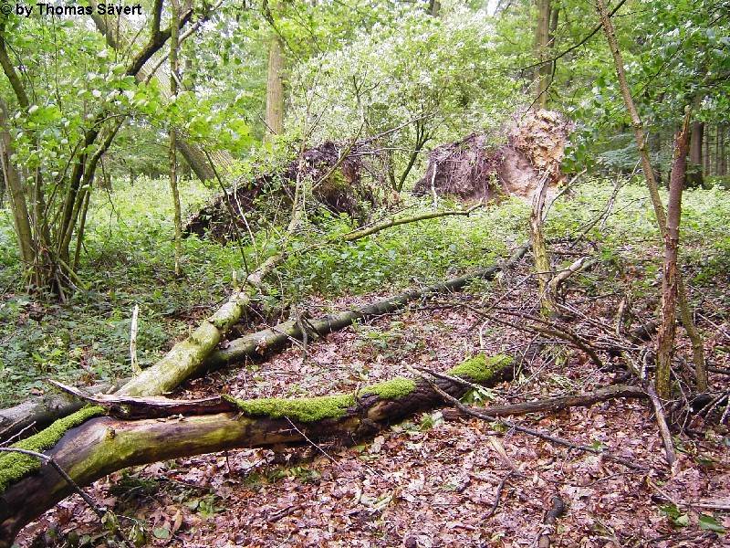 | Die Spur zog sich durch einen kleinen Wald an der Ostseite des Gutes. Hier fielen teilweise größere Bäume. | |