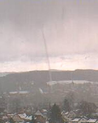 Tornado in Wangen am 10.03.2006? Am Nachmittag des 10. März 2006 wurde kurz vor 14 Uhr MEZ möglicherweise ein schwacher Tornado auf einem Webcambild entdeckt. Dazu gab es im Forum der Wetterzentrale eine ausführliche Diskussion: Beobachtung von Bernd Madlener "Tornado" in Wangen - wie sieht's denn aus? Dies ist das betreffende Bild der Webcam in Wangen: ![]() (mit freundlicher Genehmigung von Peter Diem, Berger-Höhe) Hier eine Karte von Wangen, westlich von Wangen der Kamerastandort auf der rund 600 Meter hohen Berger-Höhe. Die Blickrichtung der Kamera ist Osten in Richtung Stadtzentrum. ![]() (Auszug aus Top200, Bundesamt für Kartographie und Geodäsie) Aus dem Bild der Webcam diese Vergrößerung: ![]() (mit freundlicher Genehmigung von Peter Diem, Berger-Höhe) Mitten im durchziehenden Schauer mit Graupel und Schnee: ![]() (mit freundlicher Genehmigung von Peter Diem, Berger-Höhe) Nach dem Schauer: ![]() (mit freundlicher Genehmigung von Peter Diem, Berger-Höhe) Ob hier tatsächlich ein Tornado aufgetreten ist, das ist nicht gesichert. Es kann sich auch einfach um fallenden Niederschlag gehandelt haben, der auf der Webcam abgebildet wurde. Nach einer Meldung in der lokalen Zeitung, in der über einen bestätigten Tornado berichtet wurde, |