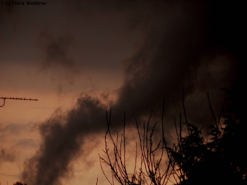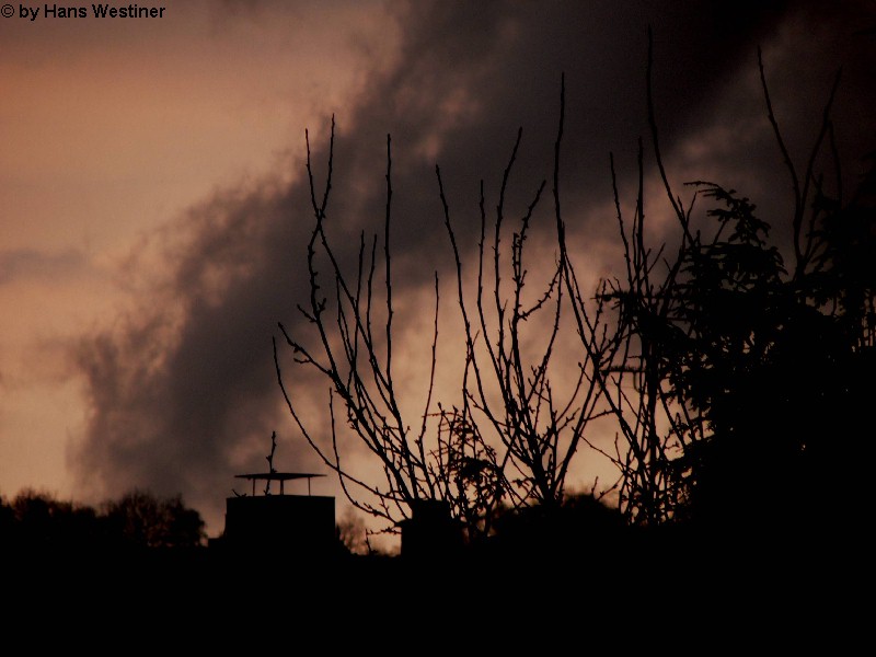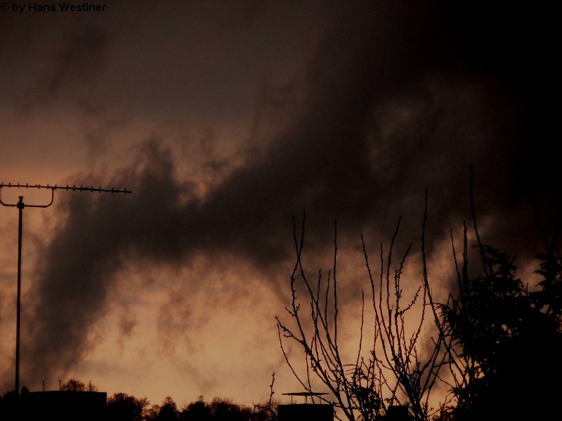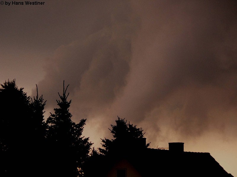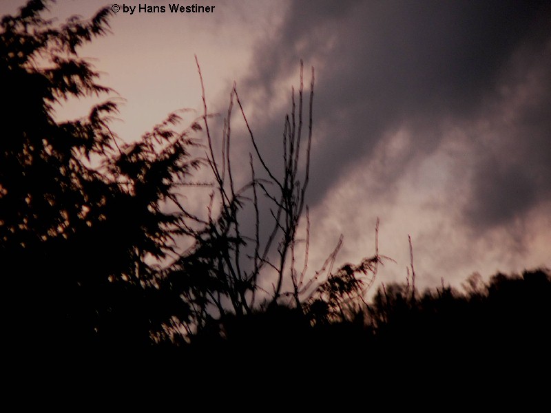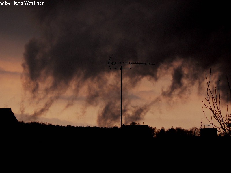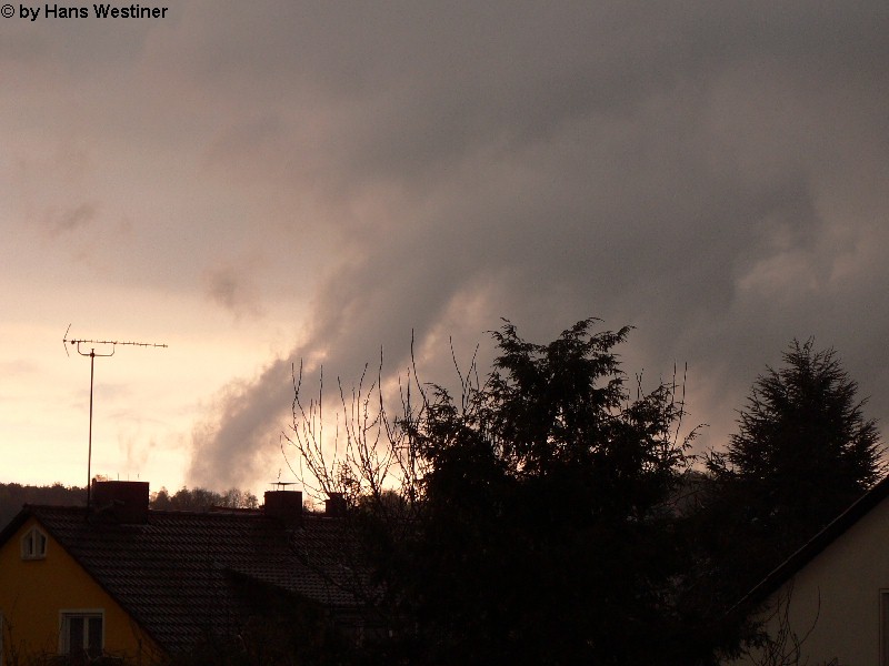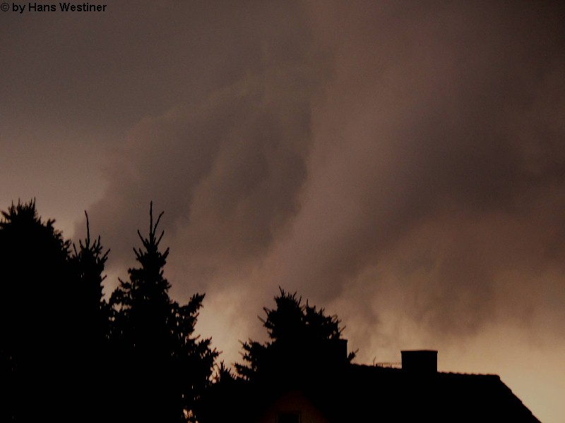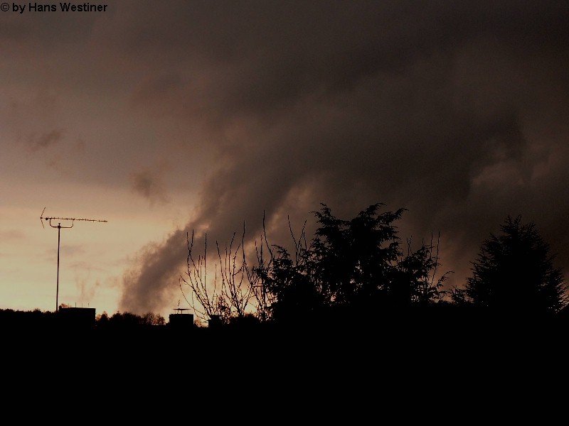 Hans Westiner macht diese Aufnahmen: "Heute, den 26.04.06 um ca. 18:40 Uhr habe ich einige Fotos von verdächtigen Wolkenformationen im Vorfeld eines Gewitters gemacht. Ich weiß nicht, ob auch Rotation dabei war, da ich dies aus der Entfernung nicht erkennen konnte. Die meisten Fotos sind herangezoomt. Das Gewitter kam aus südwestlicher Richtung auf meinen Wohnort Schwandorf (Bayern) zu. Die Fotos sind von meinem Balkon in östliche Richtung (Schwandorf-Weinberg) gemacht. Die fotografierten Wolken bewegten sich sehr schnell, obwohl die Wolken über unserem Haus fast auf der Stelle stehen blieben. Nach ca. 2 Minuten löste sich die fotografierte Wolkenformation auf." Links sehen Sie jeweils die Originalfotos (etwas überbelichtet), rechts dazu die leicht verdunkelten Aufnahmen. Zum Vergrößern bitte jeweils die Bilder anklicken.
