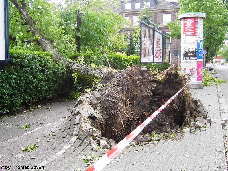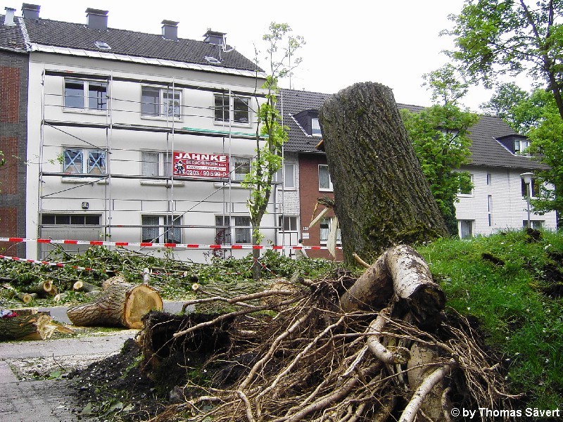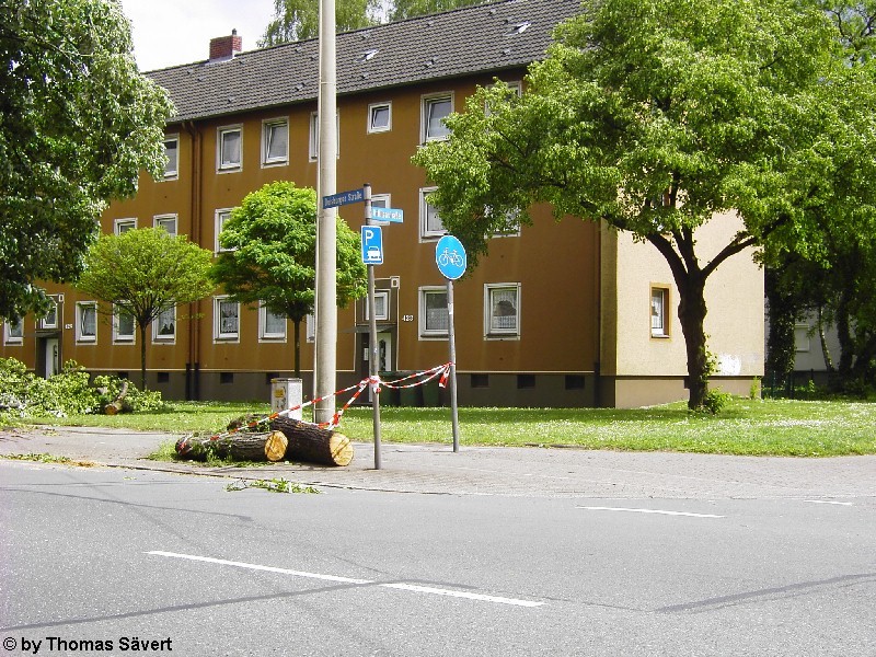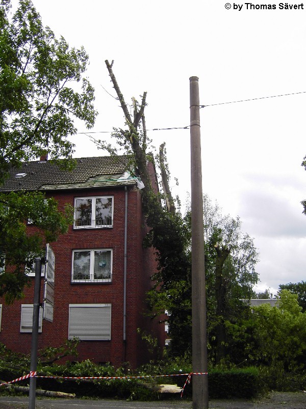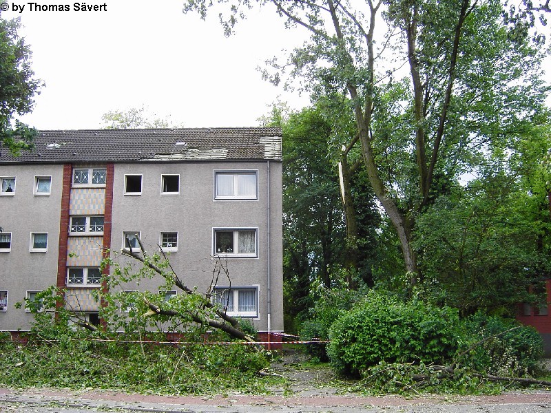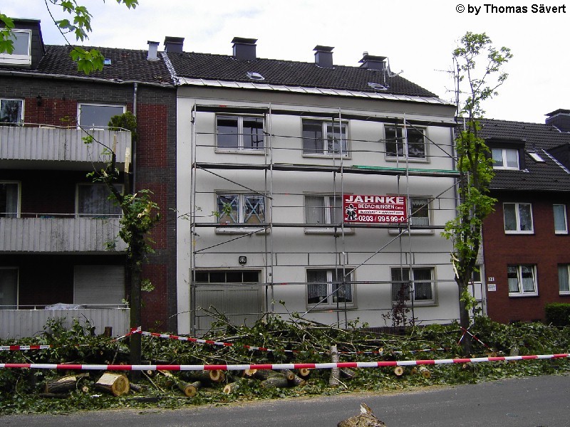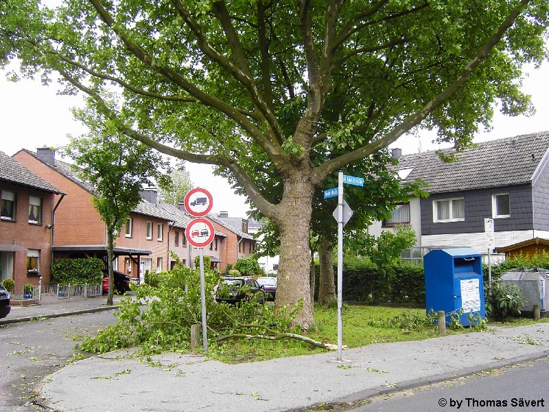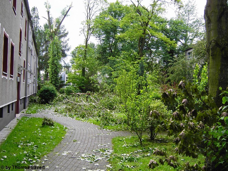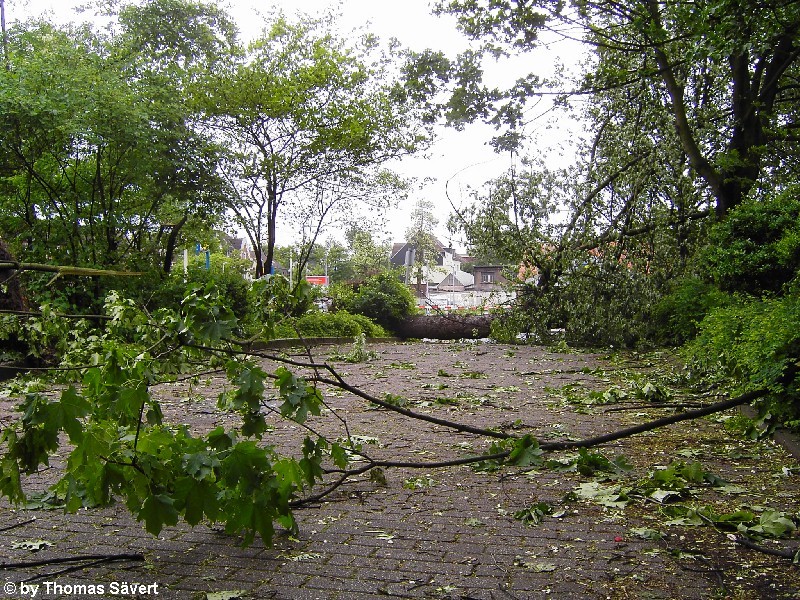 Erste Spuren fanden sich bereits in Duisburg-Meiderich: Die Sympher Straße war durch umfangreiches abgebrochenes bzw. weggerissenes Astwerk teilweise blockiert. Einige Mitarbeiter der dort ansässigen Firmen waren schnell dabei, die ersten Spuren zu beseitigen und die Straße frei zu räumen. Später hatte die Feuerwehr diese Arbeiten übernommen. Von dort zieht sich die Spur dann bis zum Oberhausener Stadtgebiet.