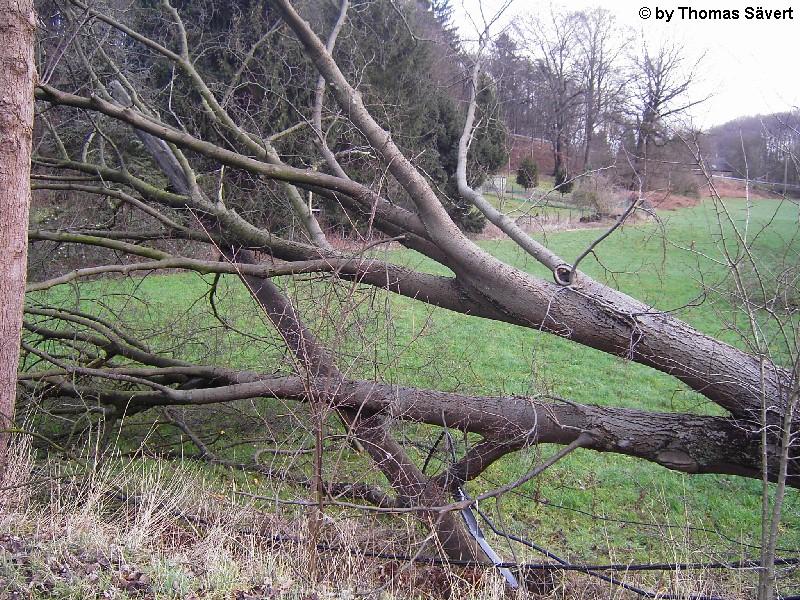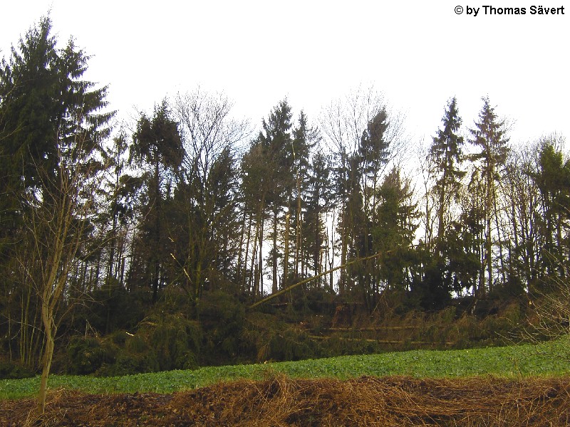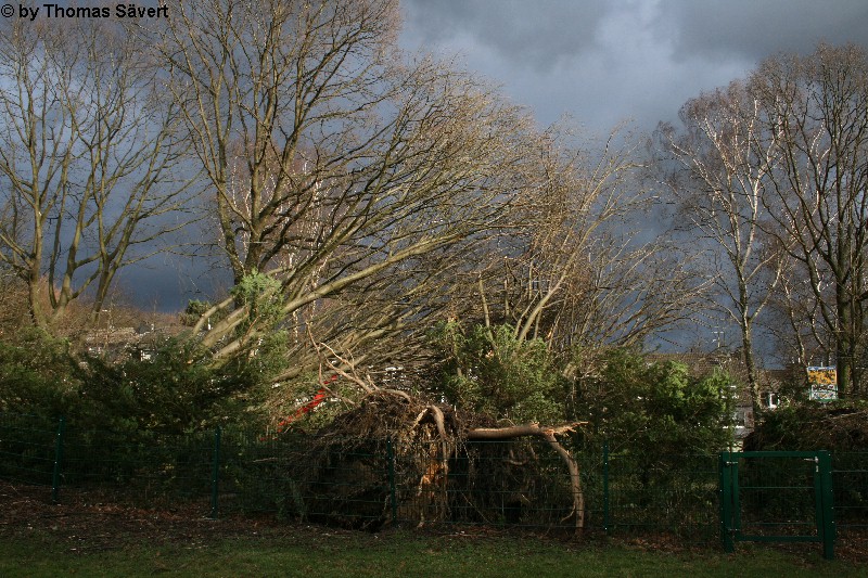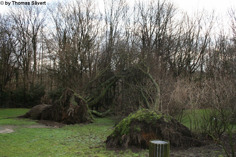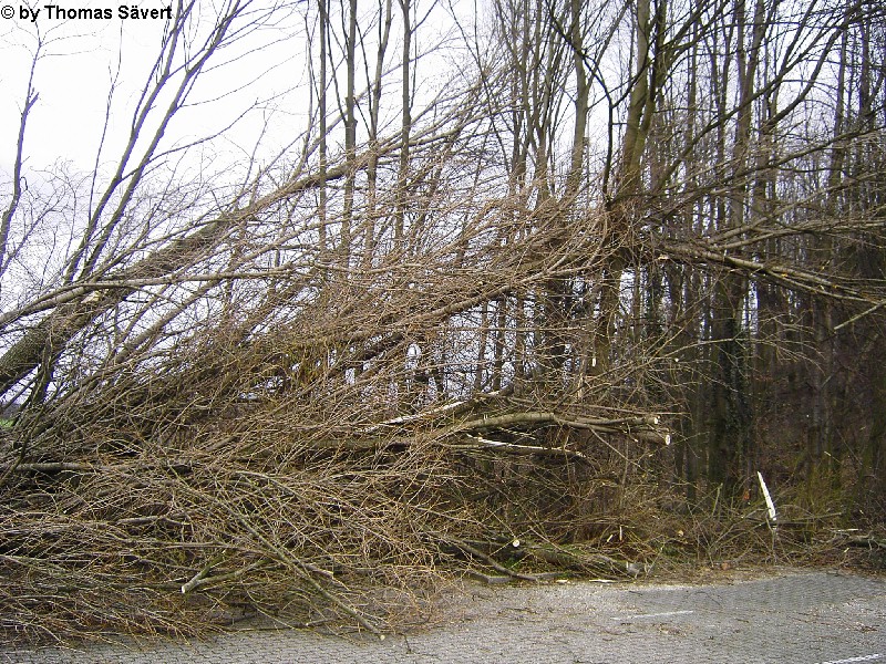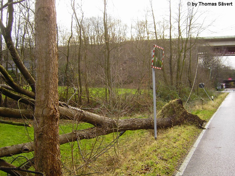 Im Kreis Mettmann war durch den Orkan "Kyrill" vor allem der Nordteil und hier besonders Velbert betroffen. Die Feuerwehr Velbert musste insgesamt 498 sturmbedingte Einsätze abarbeiten, was sich teilweise über Tage hinzog. Zum Vergleich: Im gesamten Jahr 2006 wurden gerade mal 653 Hilfsleistungen verzeichnet. Die Velberter Polizei hatte während des Orkans 147 Einsätze. An zahlreichen Gebäuden wurden die Dächer teilweise oder komplett abgedeckt und tausende Bäume stürzten um. In der gesamten Stadt fiel mit Durchgang einer Kaltfront und den damit verbundenen Extremböen von mindestens 140 km/h oder deutlich mehr der Strom für längere Zeit aus. Im Bereich zwischen Velbert und Essen-Süd wurden ganze Schneisen in die Wälder geschlagen. Nach einer Pressemitteilung der Stadt Velbert wurden allein im Stadtgebiet mehr als 1.400 Bäume beschädigt oder zerstört. Die Aufräumungsarbeiten dauern voraussichtlich bis ins Jahr 2008. Am 25. Oktober 2007 wurde das Betretungsverbot der Wälder im Kreis Mettmann aufgehoben. Da noch nicht alle Schäden beseitigt sind, bleibt es aber gefährlich in den Wäldern. Links zum Orkan in Velbert: Einsätze der Feuerwehr Velbert THW Velbert Witterungsbedingte Polizeieinsätze Kreis Mettmann Lagebericht Polizei 19.01.2007 - 08:45 Uhr Orkan Kyrill trifft Velberter Bäume schwer (Stadt Velbert, 23.01.07) Friedhöfe und Herminghauspark bleiben weiter gesperrt (Stadt Velbert, 26.01.07) Lindenallee im Herminghauspark wird wieder ein Herzstück (Stadt Velbert, 29.05.07) | |