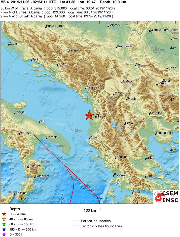 Meldung des EMSC Meldung des USGS Very Strong earthquake - Albania (Earthquake-Report) Erdbeben-Meldungen von Yahoo Earthquake News by Google Schweres Erdbeben in Albanien (Unwetteragentur, 26.11.19) |