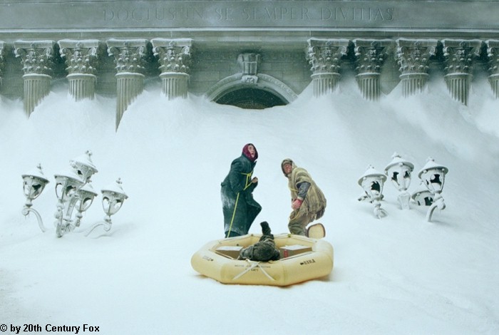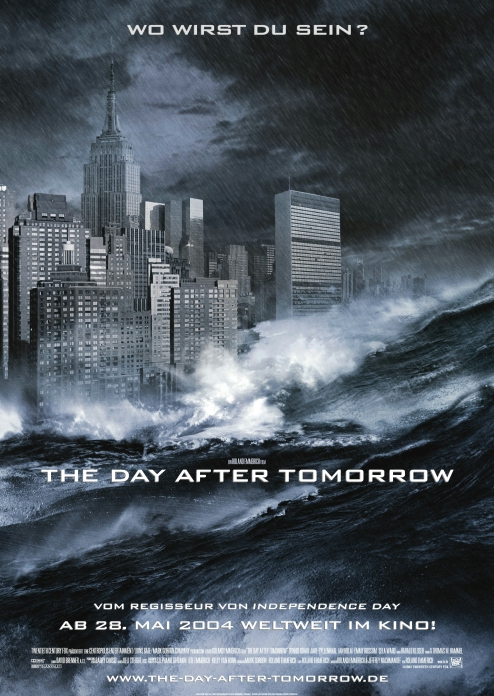 ![]() ![]() ![]() ![]() ![]() ![]() ![]() ![]() | The Day after Tomorrow Grundlage für den Film "The Day after Tomorrow" ist das Buch "Sturmwarnung" (im Original: "The coming global Superstorm") von Art Bell und Whitley Strieber. Dazu aus dem Buch: "Extreme Temperaturschwankungen und Klimaverschiebungen bestimmten das Wetter zum Ende des 20. Jahrhunderts. Nach wissenschaftlichen Erkenntnissen markiert dieser Trend nur den Anfang eines bevorstehenden klimatischen Albtraums. Steht uns ein Sturm von unvorstellbarer Macht und Zerstörungswut bevor? Durch die zunehmende globale Erderwärmung kommt es zu einer Verschiebung der Meeresströme, die nachfolgend zu einem dramatischen Klimawandel in vielen Teilen der Erde führt, was sich in verheerenden Unwettern und Naturkatastrophen auswirkt. Art Bell und Whitley Strieber, zwei der führenden amerikanischen Untersucher unerklärlicher Phänomene, entwerfen in ihrem New-York-Times-Bestseller Sturmwarnung ein Katastrophenszenario, das ausgehend von der globalen Erderwärmung entsetzliche Konsequenzen für die Erdbevölkerung hätte. Sie erklären diese Szenarios mit ihrem wissenschaftlichen Hintergrund und versuchen dabei, auch Lösungsvorschläge zu bieten." Hurrikane, Tornados, Flutwellen, Hagelstürme und viele weitere Naturkatastrophen wären also danach die Vorboten eines globalen Supersturms, der womöglich zur nächsten Eiszeit führen könnte. Das Buch erschien im Jahre 1999 mit einem Vorwort-Update im Jahre 2001, es war damals umstritten, aber wurde teilweise auch von den Medien mehr oder weniger totgeschwiegen. Die deutsche Erstausgabe erschien erst Ende April 2004 (Heyne Verlag, ISBN 3-453-87734-9, €8,95) nach Fertigstellung des Film: ![]() Inspiriert durch dieses Katastrophenszenario drehte Roland Emmerich den Film "The Day after Tomorrow". Mit Filmen wie "Independence Day" oder "Godzilla" hatte er bereits Erfahrung bei der filmischen Umsetzung gobaler Bedrohungen. Filmstart war in Deutschland am 27. Mai 2004, weltweit am 28. Mai 2004. Roland Emmerich fügte der Klimakollaps-Theorie aus dem Buch noch eine familiäre Geschichte hinzu. Zur Handlung: Der Klimatologe Jack Hall (Dennis Quaid) gehört zu den wenigen Wissenschaftlern, die eine neue Eiszeit vorhersagen. Dass allerdings weite Regionen der nördlichen Erdhalbkugel so schnell unter einer meterdicken Eisdecke verschwinden und Wolkenkratzer innerhalb sehr kurzer Zeit von mächtigen Schneewehen eingerahmt werden, das hätte auch er nicht gedacht. Millionen gefährdete Menschen müssen evakuiert werden, doch ist es für Jack Hall keine leichte Aufgabe, den US-Präsidenten von der Dringlichkeit der Maßnahmen zu überzeugen. Neben dieser großen Geschichte spielt auch ein privates Drama eine wichtige Rolle im Film: Denn Halls Sohn Sam (Jake Gyllenhaal) befindet sich mitten in der Eiswüste New Yorks... Kritik zum Film: "Der Film weist zahlreiche wissenschaftliche Ungenauigkeiten und logische Fehler auf, er verarbeitet eine interessante Theorie in teils übertriebener, zum Teil aber auch ironischer Darstellung, die auf jeden Fall sehr spannend umgesetzt ist. Fans von Action-Filmen werden sicherlich nicht enttäuscht, zumal z.B. die Tornados wesentlich realistischer wirken als noch im Kinofilm "Twister". Leider spielt der Film fast ausschließlich in den USA, der Bezug zu Europa wird nur selten hergestellt; einen vereisten Eiffelturm oder einen zugeschneiten Reichstag in Berlin bekommt man nicht zu sehen." (Thomas Sävert) Links zu "The Day after Tomorrow": Offizielle Filmseite Die Trailer zum Film 20th Century Fox Deutschland Special von Cinema und TVSpielfilm Yahoo! Movies Trailer von apple.com Coming Soon! Film Database Stern-TV am 05. Mai 2004 RTL-Seite zum Film Free-TV-Premiere bei RTL (11.03.07) Medienberichte/Kritiken rund um den Film: Emmerichs Film sorgt für Wirbel in den USA (stern.de) Roland Emmerich im SZ-Interview (Süddeutsche Zeitung) "Es war angenehm, nicht in Amerika drehen zu müssen" (Welt, 18.05.04) Interview mit Bundesumweltminister Jürgen Trittin (Tagesspiegel) Die Jahrhundertflut schwappt bis Hollywood (SZ Online) "Das passt Bush überhaupt nicht" (Emmerich im Focus) Nach Diktat vereist (Frankfurter Rundschau, 26.05.04) Einmal Erde, tiefgekühlt (wissenschaft-online, 04.06.04) Maulkorb für Nasa-Wissenschaftler (heise.de) Now the Pentagon tells Bush: climate change will destroy us Wissenschaftlicher Hintergrund: Es gibt zahlreiche, kontroverse Meinungen unter den Wissenschaftlern zur weiteren Entwicklung des Weltklimas und deren lokalklimatischen Auswirkungen. Die meisten Szenarien zielen auf eine globale Erwärmung hin mit weitreichenden Folgen für Tiere, Pflanzen und den Menschen. Z.B. durch Veränderungen lokaler Meeresströmungen droht regional nach Meinung einiger Wissenschaftler aber auch ein gegenteiliger Effekt, etwa eine kleine Eiszeit in Teilen Europas durch Versiegen des Golfstromes. Eine weitere Theorie sieht im Zuge der globalen Erwärmung die Auslösung gewaltiger Stürme, die dann innerhalb sehr kurzer Zeit einen Klimaschock einleiten könnten. Mit dieser Theorie befasst sich der Film. Dazu einige Links: Die inszenierte Eiszeit (FAZ) Seite des Bundesumweltministeriums zum Film Greenpeace-Seite zum Film Klimawandel - Emmerichs Visionen und die harte Realität Die Klimakatastrophe im Zeitraffer (Tagesspiegel) Artikel der Klimaforschung des MPI für Chemie in Mainz Klimaforscher streiten über Emmerichs Eismaschine Eiszeit durch Klimaerwärmung? Eiszeiten, die Schrecken der Menschheit (Michael Köchling) Eiswüste in Europa, Nuklearkriege und andere Schreckensszenarien (heise.de) New Little Ice Age Instead of Global Warming? by Dr. Theodor Landscheidt "Unwissenschaftlich, aber hilfreich" (Mojib Latif in stern.de) Überblick zur Klimaerwärmungsdiskussion (schulphysik.de) New Ice Age Predicted -- But Averted by Global Warming? (National Geographic, 12.11.08) Die Rückkehr der harten Winter? (Spektrum, 22.01.13) Forscher in Sorge wegen Atlantik-Str