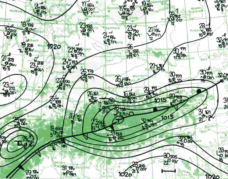 Das Münchener Hagelunwetter am 12. Juli 1984: In zahlreichen Regionen der Erde entstehen immer wieder gewaltige Schäden durch Hagel. Eines der schlimmsten Hagelunwetter der vergangenen Jahrzehnte in Deutschland ereignete sich am 12. Juli 1984, als ein schweres Gewitter über Bayern zog und mit riesigen Hagelkörnern gewaltige Schäden in München anrichtete. Die Gesamtsumme der Schäden belief sich auf ca. 3 Milliarden Euro, von denen nur etwa die Hälfte versichert war. Es gab rund 400 Verletzt, viele davon schwer. Glücklicherweise kam niemand direkt durch den Hagel ums Leben. Links sehen Sie einige Bilder zum Münchener Hagel aus der Sonderveröffentlichung zum Hagelunwetter der Münchener Rückversicherung. Zum Vergrößern bitte jeweils klicken. Die Schadensbilanz war verheerend: Die verantwortliche Gewitterzelle legte insgesamt eine Strecke von etwa 300 Kilometern zurück. Dabei richtete sie in einem Streifen von Landsberg über den Münchener Raum hinweg nach Osten bis Nordosten verbreitet gewaltige Schäden an. Hier ein kleiner Überblick: - An etwa 70.000 Gebäuden entstanden Schäden - 240.000 PKW wurden durch den Hagel beschädigt - Große landwirtschaftliche Flächen wurden verwüstet - Besonders im Münchener Osten wurden zahlreiche Gewächshäuser völlig zerstört - Am Flughafen München-Riem gab es enorme Schäden an Flugzeugen