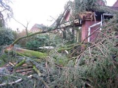 Orkantief "Ulli" am 03./04. Januar 2012: Das Orkantief "Ulli" zog vom Atlantik kommend über Schottland und die nördliche Nordsee nach Südskandinavien. Das zugehörige Sturmfeld erfasste Irland, die Britischen Inseln, Dänemark und vor allem den Norden und die Mitte Deutschlands. Auf dem Brocken im Oberharz wurde eine Spitzenböe von 169 km/h gemessen. Im Flachland gab es verbreitet zum Teil schwere Sturmböen. Dadurch stürzten zahlreiche Bäume um und einige Straßen und Bahnverbindungen wurden gesperrt. Es gab mehrere Verletzte. Im niedersächsischen Papenburg wurde ein Teil des Daches der "Ems-Zeitung" fortgerissen. In Wuppertal zerstörte eine 30 Meter hohe Buche das Dachgeschoss eines Wohnhauses. In England und auf dem Ärmelkanal kamen im Sturm zwei Menschen ums Leben. Übersichten zum Orkan: Orkantief ULLI (meteomedia) Mögliche schwere Sturmlage Di/Mi 3./4.11.2012 (WZ-Forum) Nowcast: Orkantief "Ulli" 3./4.1.2012 (WZ-Forum) Böen 6stündig bis 19 Uhr - XXL Karte (WZ-Forum) Schadensmeldungen: Orkantief "Ulli" 3./4.1.2012 (WZ-Forum) Berichte und Meldungen zum Orkan: Orkan "Ulli" 03.01./04.01.2012 - Schadensmeldungen (Skywarn) Starke Böen und kleine Schäden (WDR, 03.01.12) Orkane fegen über Deutschland (n-tv, 03.01.12) "Ulli" pustet Deutschland durch (n-tv, 04.01.12) Sturmtief "Ulli" richtet Schäden an (NDR, 04.01.12) Verletzte und Schäden - Sturmtief wütete über dem Norden (wetter.info, 04.01.12) Sturmtief "Ulli" liefert Vorgeschmack auf "Andrea" (Tagesschau, 04.01.12) A5 bei Weingarten: Autos fahren in umgestürzten Baum (Karlsruhe News, 04.01.12) |