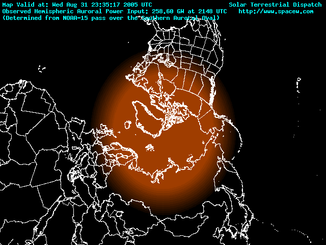 No.11/2005: 31.08./01.09.2005 ![]() © by Michael Theusner | In dieser Nacht wirkte sich ein so genanntes Coronal Hole ungewöhnlich stark aus - dazu hier ein EIT284-Bild der Sonne (ca. 235 KB) - und bescherte dem Norden Deutschlands das 11. Polarlichtereignis des Jahres 2005. Es liegen zahlreiche Sichtungsmeldungen vor. Zum Ereignis erfolgte im Polarlichtforum eine Vorwarnung. Hier noch der Energieeintrag in die Atmosphäre (spacew.com). Raisdorf bei Kiel von Uli Dzieran Elmshorn (NW. von Hamburg) von Rainer Kracht Bernitt bei Rostock - Videos von Wolfgang Hamburg Greifswald von Michael Heiß Hannover von Daniel Ricke Braunschweig von Thorsten Schipmann Oberharz von Michael Theusner Gudensberg-Obervorschütz, Nordhessen von Lutz Schenk Riesa, Sachsen von Stefan Schwager Alle Sichtungen im AKM-Forum |