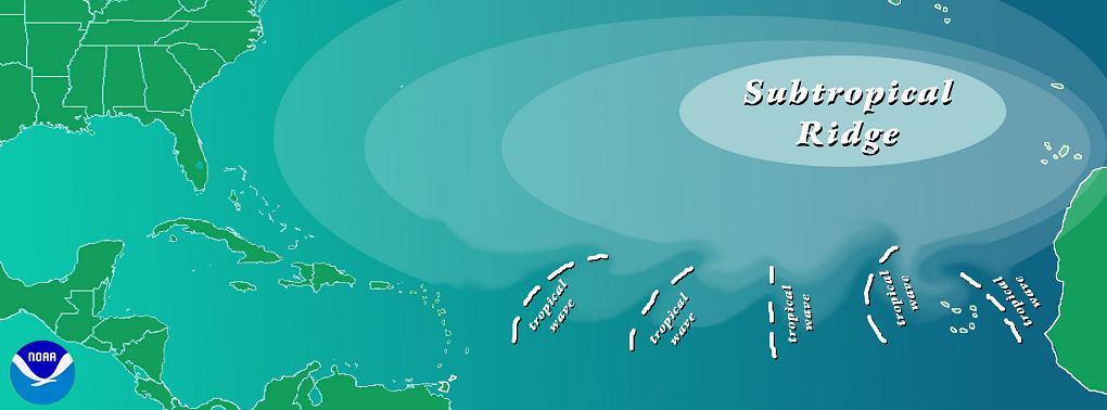 Es ist schon etwa seit den 1930er Jahren bekannt (Dunn 1940), dass westwärts ziehende Störungen in der unteren Troposphäre (vom Ozean bis etwa 5 Kilometer mit einem Maximum in etwa 3 Kilometer Höhe) für einen größeren Teil der tropischen Wirbelstürme auf dem Nordatlantik die auslösende Zirkulation liefern. Riehl (1945) half, die Meinung zu verfestigen, dass diese Störungen, nun bekannt als afrikanische "Easterly Waves", ihren Ursprung über Nordafrika haben. Während in den folgenden Jahrzehnten verschiedene Mechanismen für die Entstehung dieser Wellen verantwortlich gemacht wurden, war es Burpee (1972), der festhielt, dass die Wellen durch eine Instabilität im östlichen Jet (Starkwindband in der Höhe) über Afrika hervorgerufen wurden. Dieser Jet entsteht durch den Temperaturunterschied über dem westlichen und zentralen Nordafrika zwischen extrem hohen Temperaturen über der Sahara und deutlich tieferen Werten am Golf von Guinea. Die Wellen ziehen im Allgemeinen im Bereich der bodennahen Passatwinde nach Westen über den Atlantischen Ozean. Sie werden normalerweise zuerst im April oder Mai beobachtet und treten bis in den Oktober oder November hinein auf. Die Wellen haben typischerweise eine Periode von 3 oder 4 Tagen und eine Wellenlänge von 2.000 bis 2.500 Kilometer (Burpee 1974). Im langjährigen Mittel entstehen über Nordafrika etwa 60 Wellen pro Jahr, aber es scheint so, dass die Zahl der Wellen überhaupt nicht in Verbindung steht mit der Anzahl der tropischen Wirbelstürme, die sich in jedem Jahr auf dem Atlantik bilden. Während nur etwa 60 Prozent der atlantischen Tropischen Stürme und schwächeren Hurrikane (Kategorien 1 und 2 auf der Saffir-Simpson-Skala) aus Easterly Waves hervorgehen, entstehen fast 85 Prozent der starken Hurrikane aus Easterly Waves (Landsea 1993). Es wird davon ausgegangen, dass nahezu alle tropischen Wirbelstürme auf dem Ostpazifik bis nach Afrika zurückverfolgt werden können. (Avila and Pasch 1995). Derzeit ist noch völlig unbekannt, wie sich Easterly Waves von Jahr zu Jahr in Intensität und Lage verändern und wie diese mit der Aktivität auf dem Atlantik (und dem Ostpazifik) zusammenhängen könnten. |