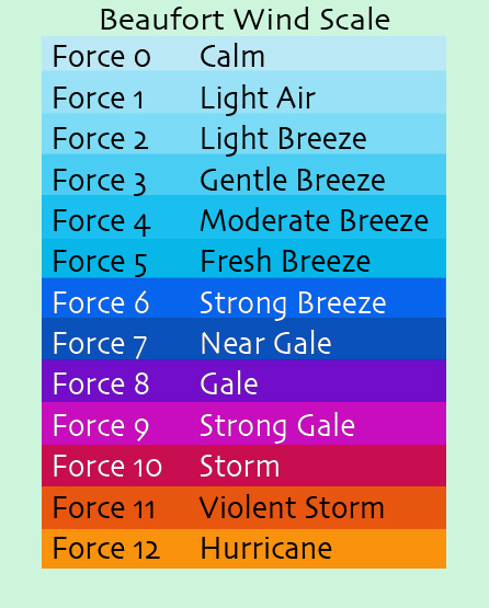 Während des 19. Jahrhunderts, als verlässliche Anemometer (Windmesser) hergestellt wurden, konnte man den einzelnen Stärken Windwerte zuordnen. Aber erst im Jahre 1926 (mit Veränderungen in den Jahren 1939 und 1946) gab das International Meteorological Committee (Vorgänger der Weltmeteorologieorganisation WMO) eine universelle Windskala mit den zugeordneten Windgeschwindigkeiten heraus. Es war eine aufsteigende Skala mit zunehmenden Abständen der Windgeschwindigkeiten für höhere Stärken. So reicht Windstärke 1 nur für eine Spanne von drei Knoten, während Stärke 11 eine Spanne von 8 Knoten abdeckt. Damit beginnt Stärke 12 ("hurricane force") bei 64 Knoten (74 mph, 33 m/s). An dieser Zahl ist nichts magisch und weil Windgeschwindigkeiten in Hurrikanstärke ein seltenes Erlebnis sind - das Kommitee hatte diese Erfahrung nicht - gab es keine echten Beobachtungen in einem Hurrikan. Die bereits im Jahre 1759 erstellte Smeaton-Rouse Windskala setzte Hurrikanstärke erst ab 70 Knoten (80 mph, 36 m/s) fest. Dies ist in etwa auch die Grenze, ab der ein Hurrikan seine Struktur mit dem Auge, der eyewall und den spiralförmigen Regenbändern aufbaut. Daher beginnt Hurrikanstärke ab diesen Werten. Referenzen: