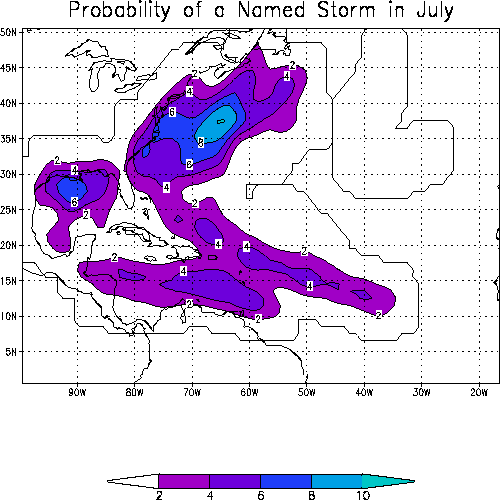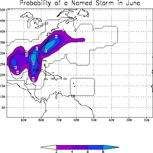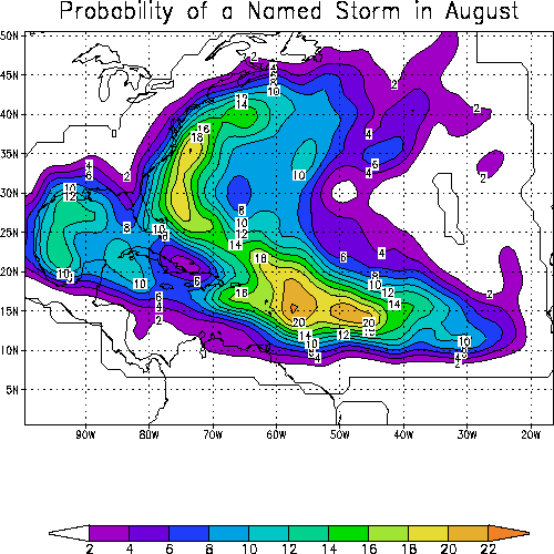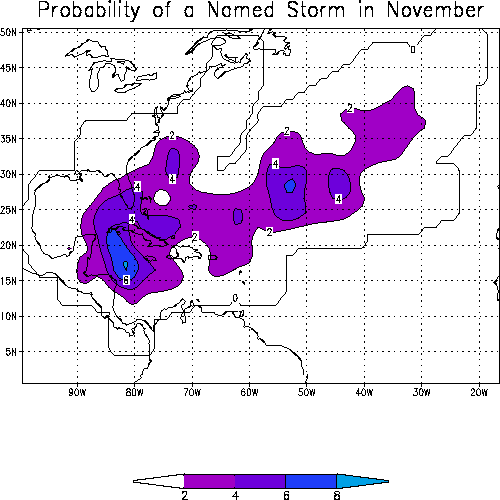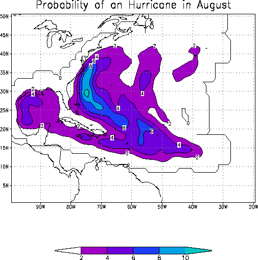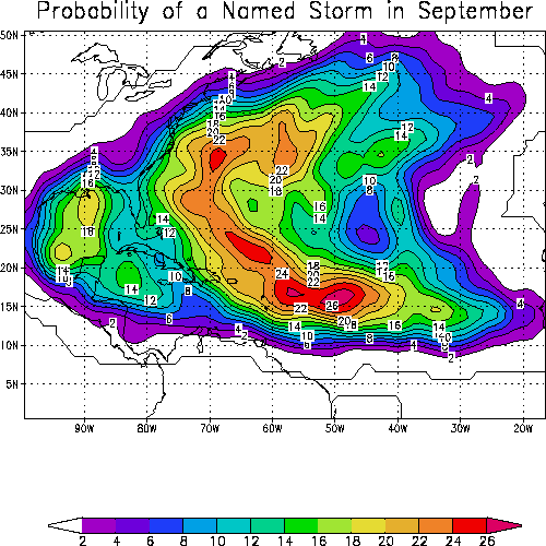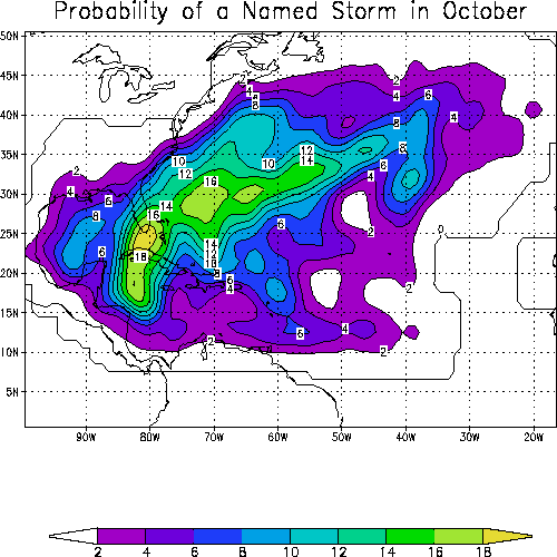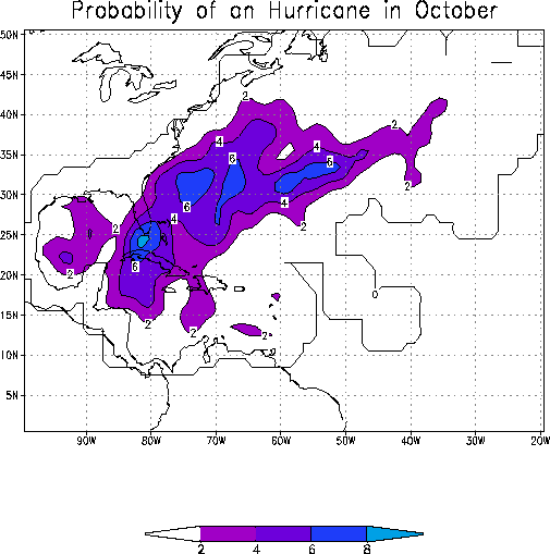 zusammengestellt von Chris Landsea Die folgenden Karten zeigen das Risiko für jeden einzelnen Ort in jedem Monat,