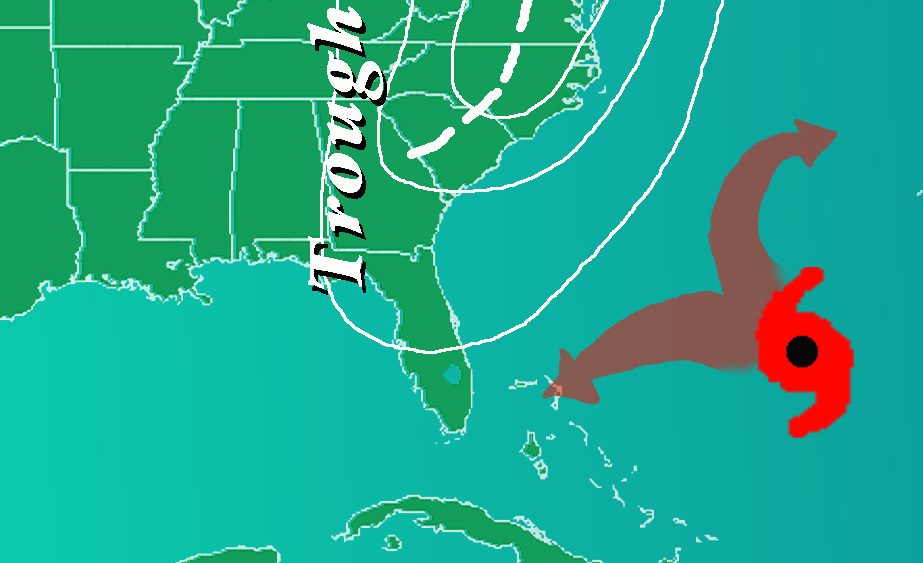 In tropischen Breiten (typischerweise vom Äquator bis etwa 20 bis 25 Grad Nord und Süd) ziehen tropische Wirbelstürme meistens nach Westen mit einer leichten Komponente in Richtung Pol. Dies liegt an einer Hochdruckzone, auch Subtropischer Hochdruckgürtel genannt, die sich auf der polwärtigen Seite des Sturms in Ost-Westrichtung erstreckt. Auf der zum Äquator gerichteten Seite der Hochdruckzone wehen normalerweise östliche Winde. Wenn aber der Hochdruckgürtel an einer Stelle nur schwach ausgeprägt ist (oft durch außertropische Tiefs mit ihren Fronten geschwächt), dann kann der tropische Wirbelsturm in Richtung Pol eindrehen und nach Osten zurückziehen. Auf der Polseite der Hochdruckzone herrschen westliche Winde vor, sie lassen den Sturm dann nach Osten ziehen. Diese Westwinde sind dieselben, mit denen typischerweise außertropische Tiefs mit ihren Warm- und Kaltfronten nach Europa ziehen.