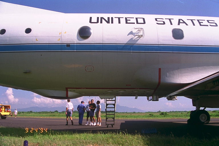 ... und direkt unter dem Flugzeug kann man durch die tiefen Wolken hindurch den aufgewühlten Ozean sehen mit Wellen, die manchmal 60 Fuß (ca. 20 Meter) hoch werden und zusammenstürzen. Das Teil-Vakuum im Auge des Hurrikans (wo ein Zehntel der Atmosphäre fehlt) ist wie kein anderer Ort auf der Erde. Ich erlebe lieber einen Hurrikan auf diesem Wege aus dem sicheren Inneren eines Flugzeuges als am Boden der vollen Gewalt des Hurrikans ohne Schutz ausgeliefert zu sein."