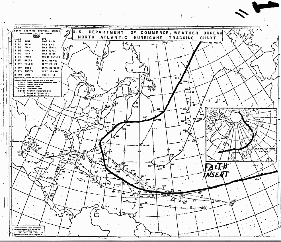 Zum Vergrößern bitte klicken - Zugbahn des Hurrikans "Faith" 1966 (NHC)