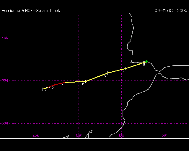 Zugbahn des Hurrikans "Vince" 2005 (Unisys)